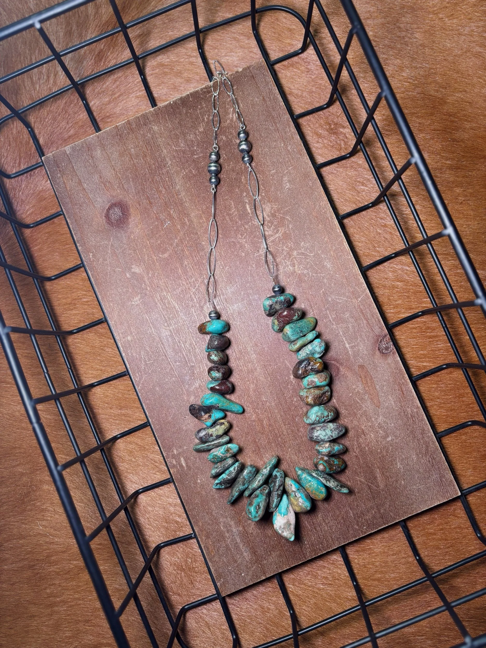 Authentic Jewels › Chunky turquoise necklace Image 1 of 1 Chunky turquoise necklace $130.00 Genuine turquoise necklace with sterling silver pearls 22” Add To Cart Added! Genuine turquoise necklace with sterling silver pearls 22”