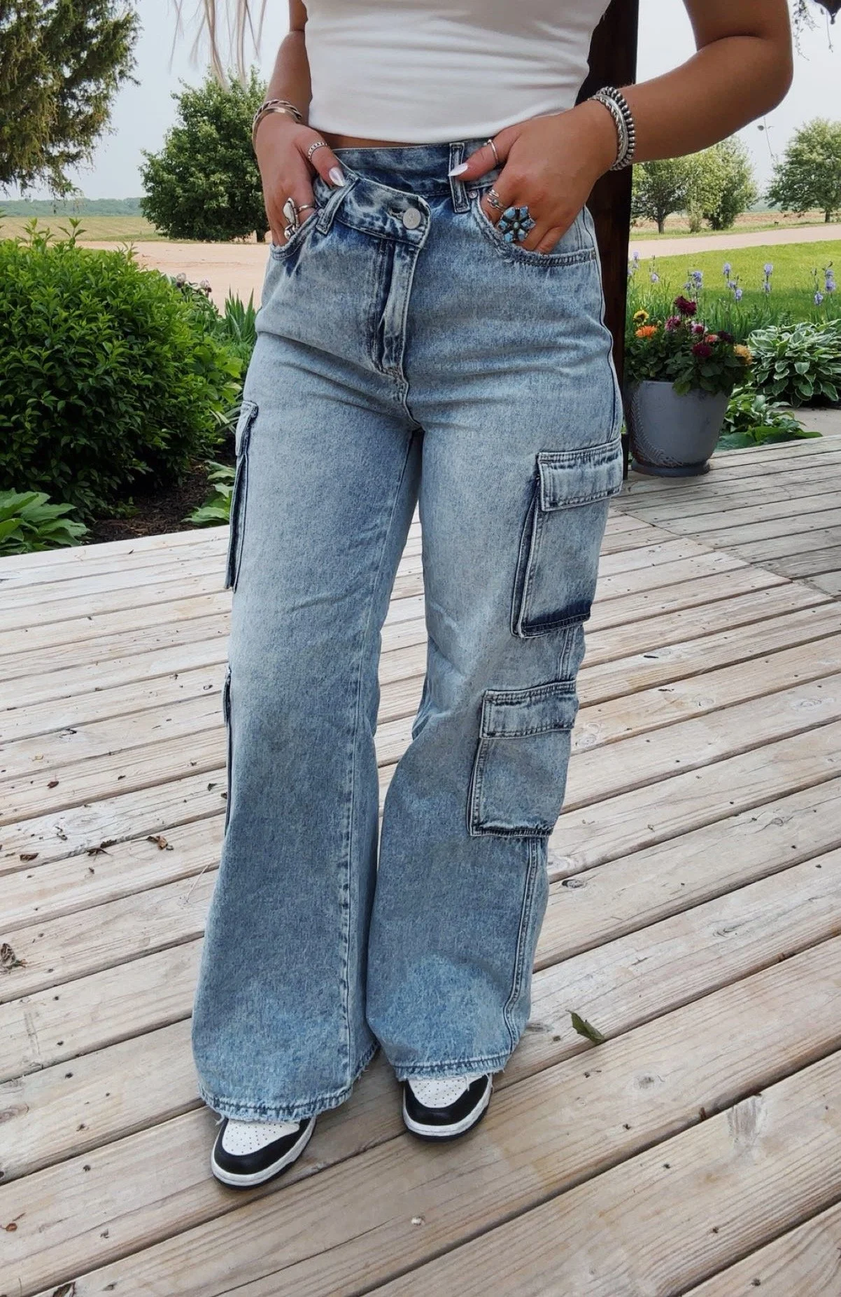 Denim Wide leg jeans from $55.00 Sold out Wide leg trousers $62.00 Camo cargo pants from $62.00 Sold out Crossover cargo jeans from $40.00 Sale Light wash barrel jeans Sale Price: $35.00 Original Price: $42.00 Sold out Distressed wide leg jeans Sale Price: $40.00 Original Price: $50.00 Sold out