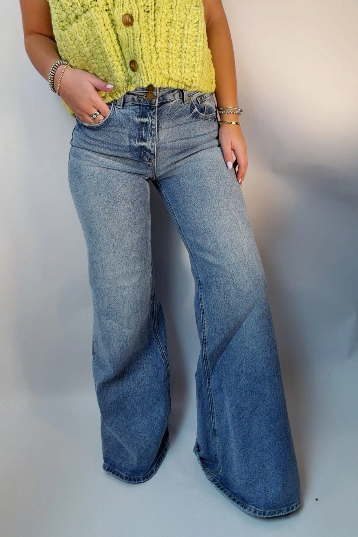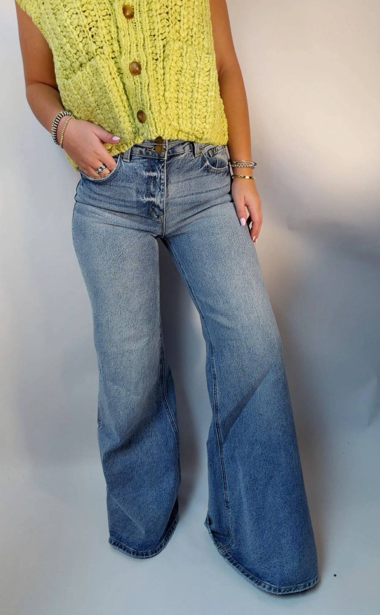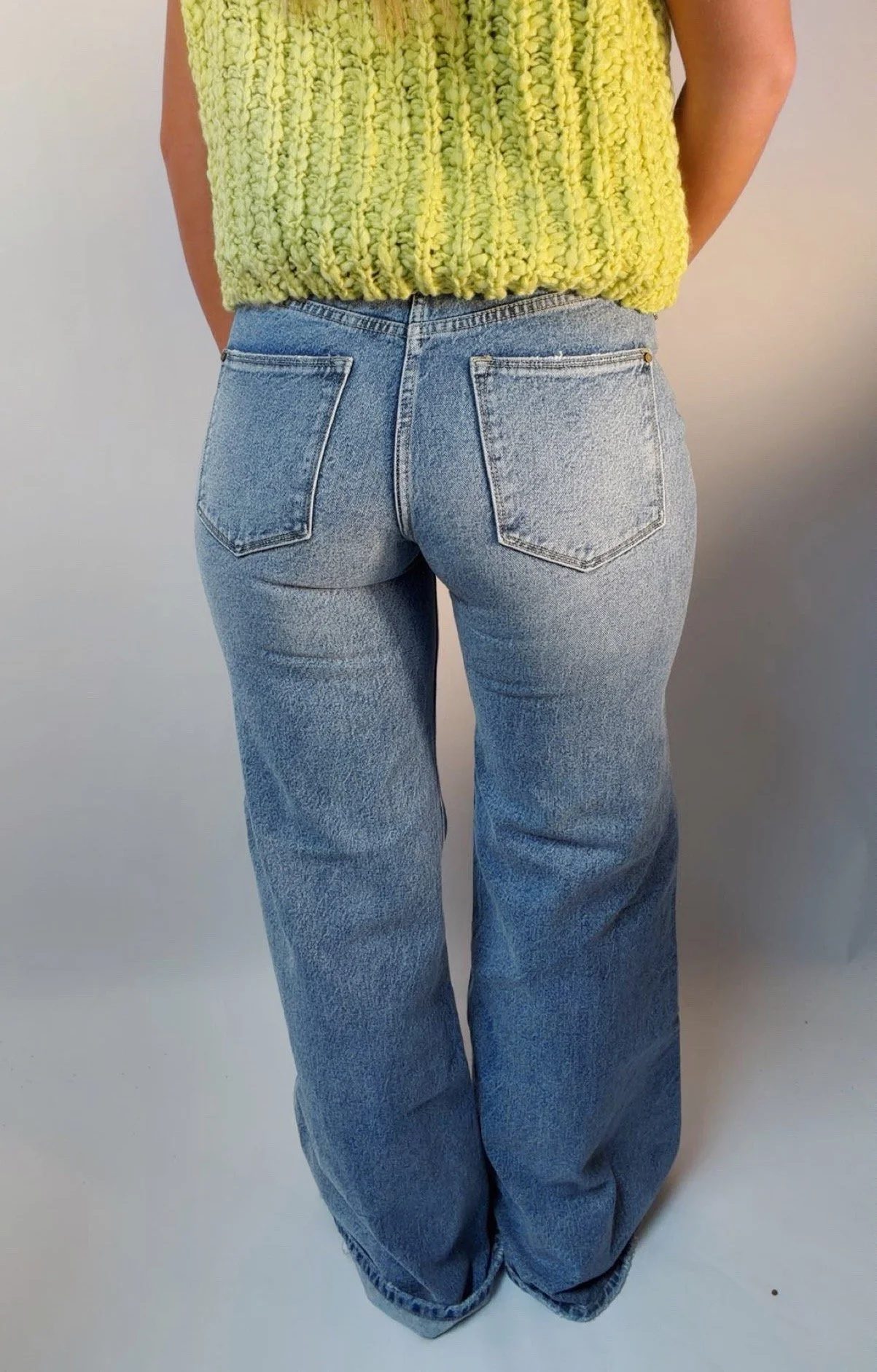 Denim › Wide leg jeans Image 1 of 6 Image 2 of 6 Image 3 of 6 Image 4 of 6 Image 5 of 6 Image 6 of 6 Wide leg jeans $55.00 Wide leg jeans 34” inseam Model is wearing a size 7/27 Size: 1/24 3/25 5/26 7/27 9/28 11/29 13/30 Add To Cart Added! Wide leg jeans 34” inseam Model is wearing a size 7/27