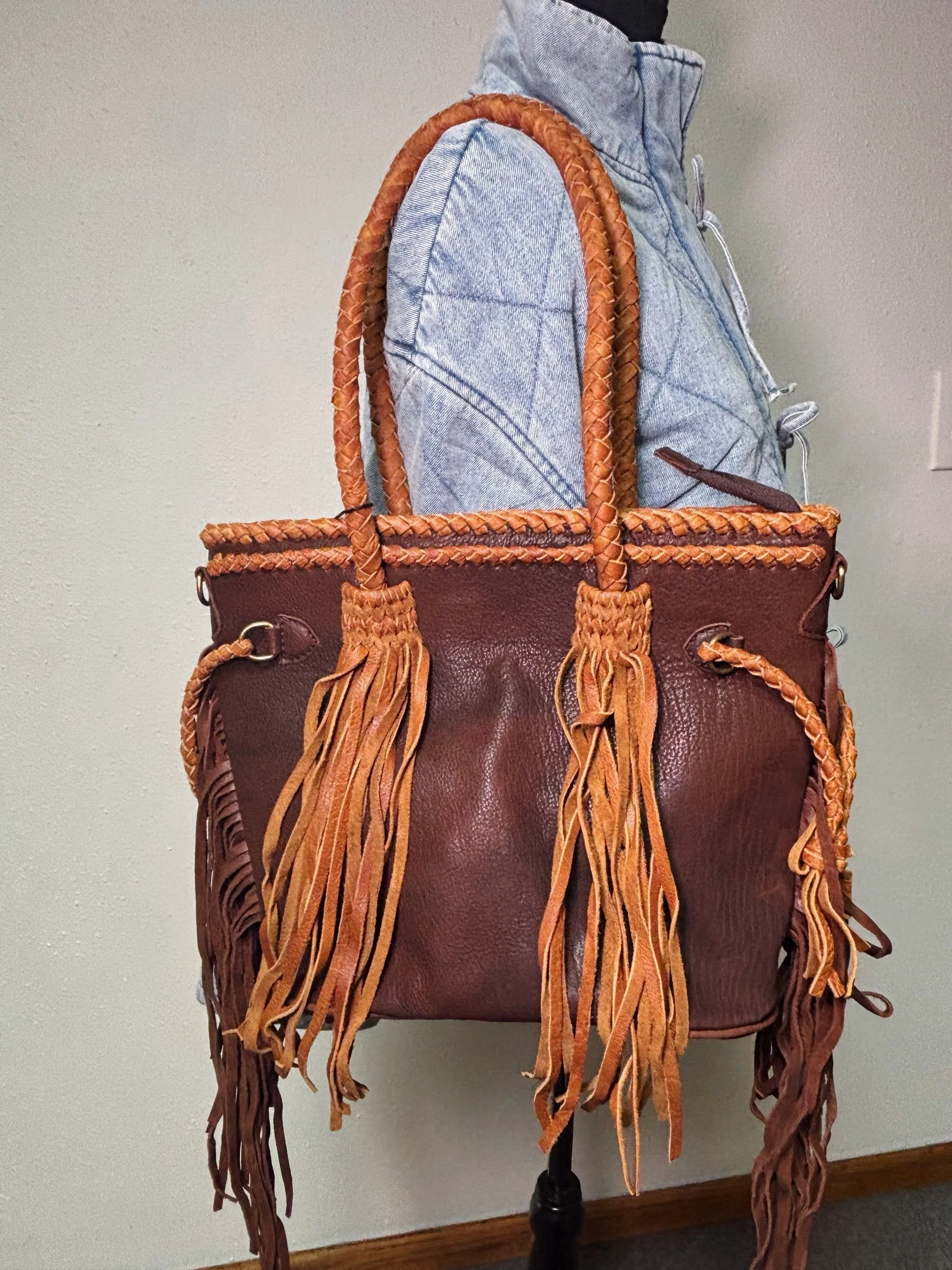 Purses › Two toned fringe tote Image 1 of 1 Two toned fringe tote $74.00 Genuine leather tote bag Add To Cart Added! Genuine leather tote bag