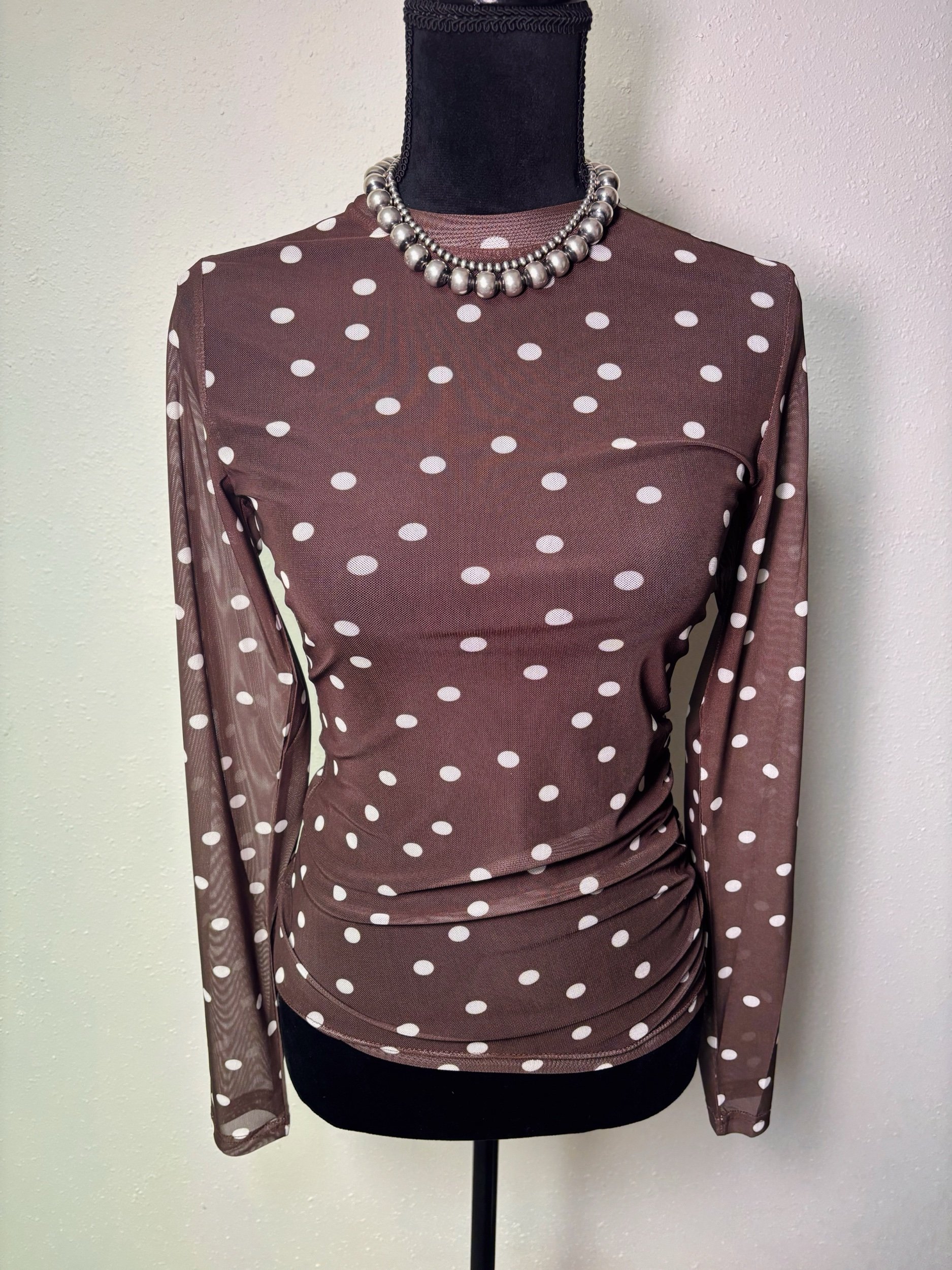 Tops › Sheer polka dot top Image 1 of 1 Sheer polka dot top $18.00 Brown sheer polka dot top Size: S M L Quantity: Add To Cart Added! Brown sheer polka dot top