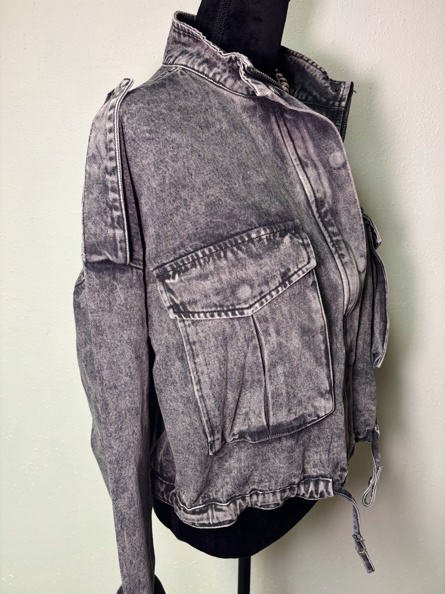Tops › Cargo jacket Image 1 of 2 Image 2 of 2 Cargo jacket $52.00 Denim cargo cropped jacket Size: S M L Quantity: Add To Cart Added! Denim cargo cropped jacket